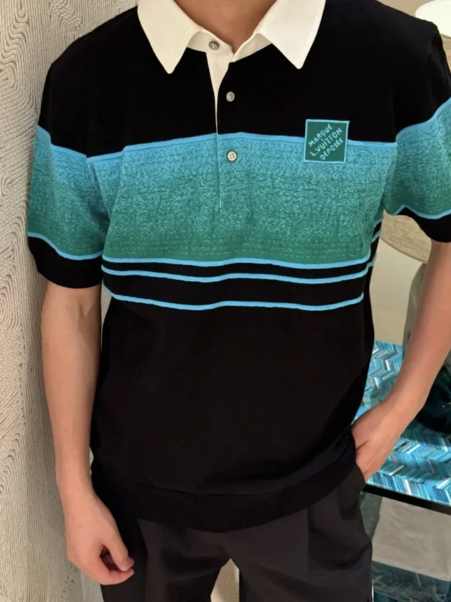 LV 25SS Pharrell菲董秀款Jacquard渐变字母提花翻领POLO衫