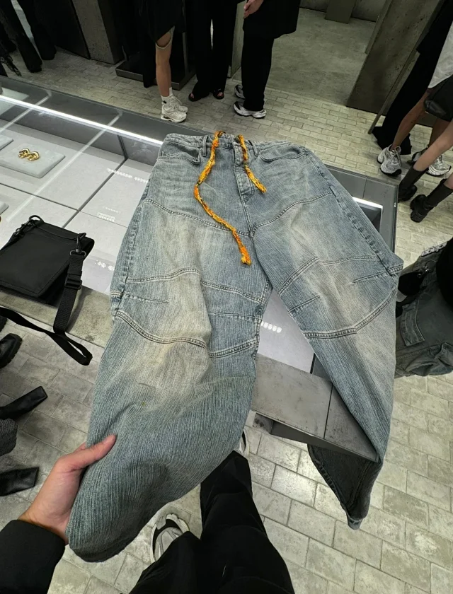 BLCG/巴黎 25SS Baggy油蜡黑色/蓝色花色抽绳牛仔长裤