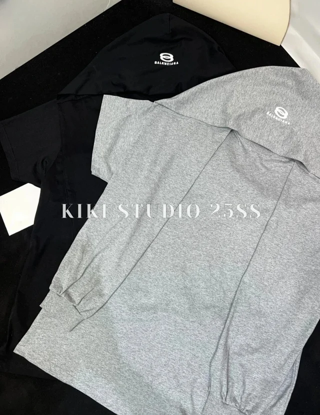BLCG/巴黎 25SS 双环刺绣LOGO假两件结构拼接连帽短袖T恤