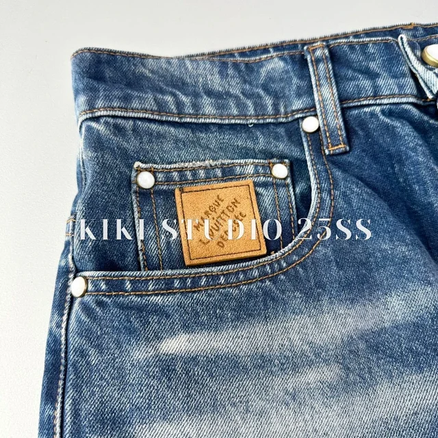 LV 25SS Pharrell菲董秀款复古洗水不规则褪色皮标牛仔长裤