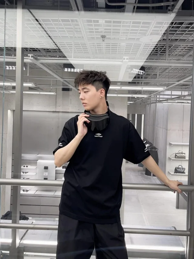 BLCG/巴黎 25SS SKI滑雪系列3B刺绣LOGO黑色短袖T恤