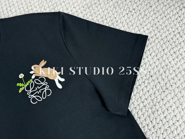 LOEW 25SS Suna Fujita动漫兔子刺绣LOGO黑色/灰色短袖T恤