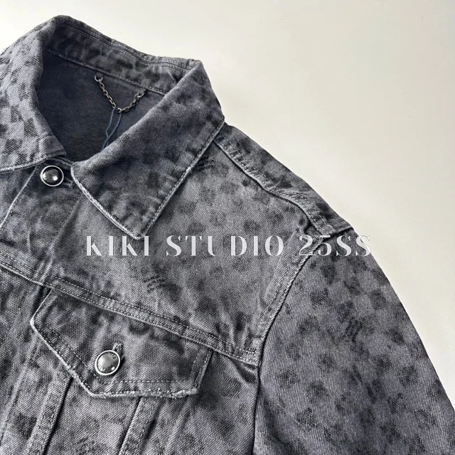 LV 25SS 早春Pharrell菲董秀款棋盘格植绒字母渐变卡车牛仔夹克外套/植绒牛仔裤套装