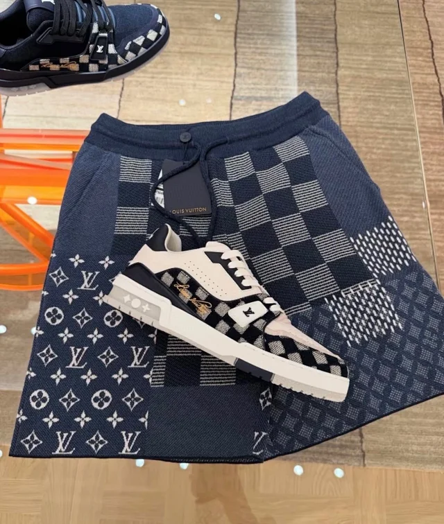 Trainer运动鞋将成衣系列的宽松廓形引入秀场瞩目亮相牛皮鞋面结合粗犷织物鞋带,以缤纷串珠点明品牌经典元素。字母标注鞋舌,Monograma花卉栖身外底采用头层牛皮制成,进口定制专用印花牛仔布包裹