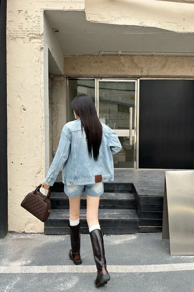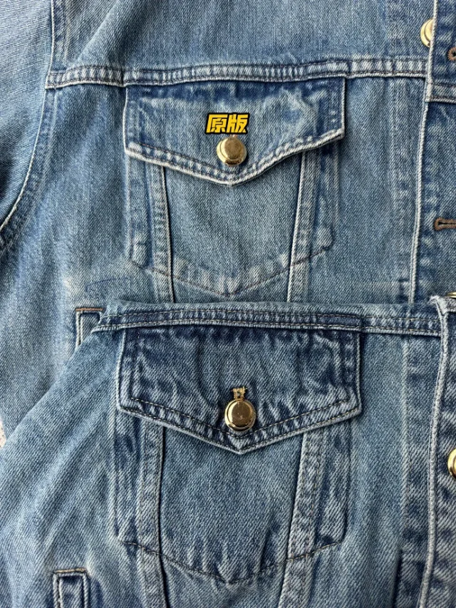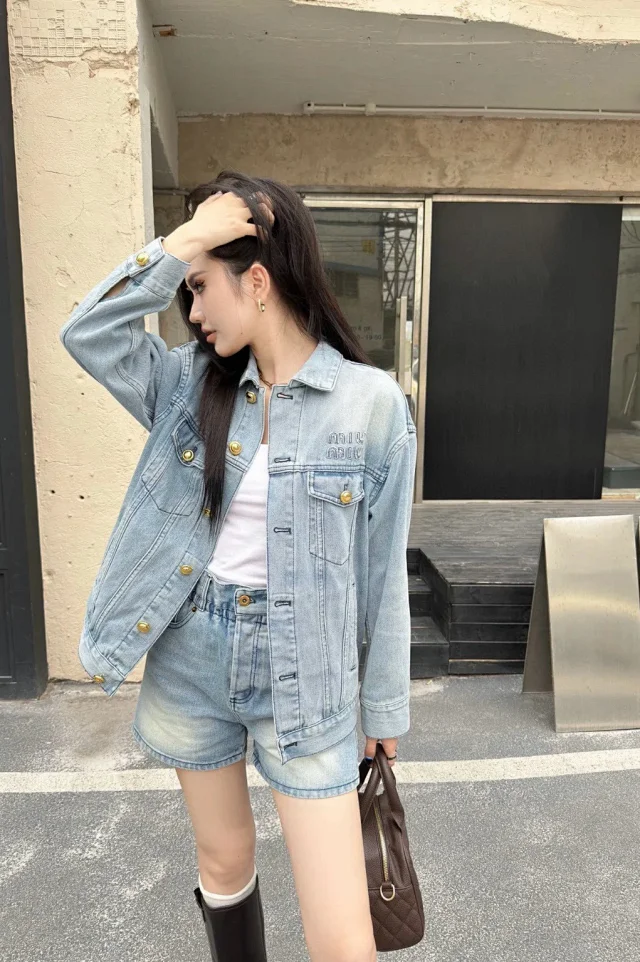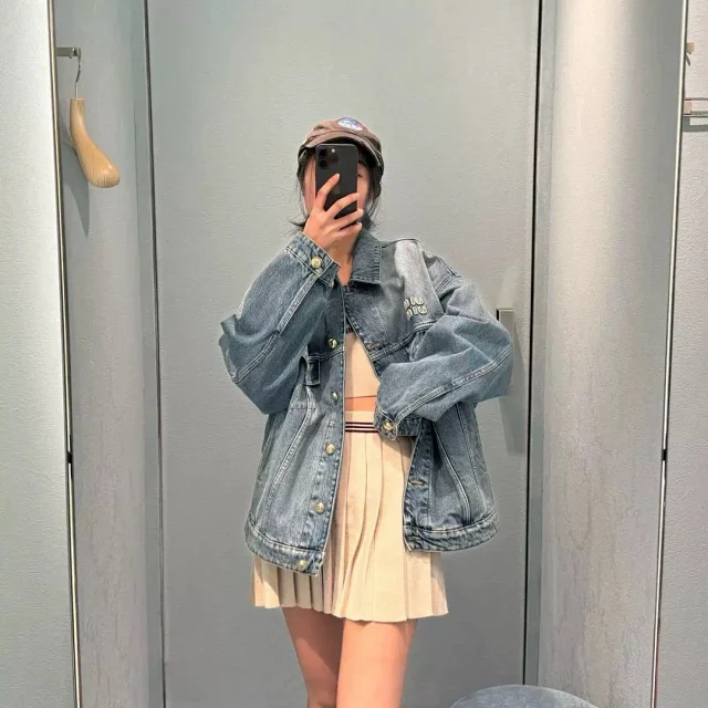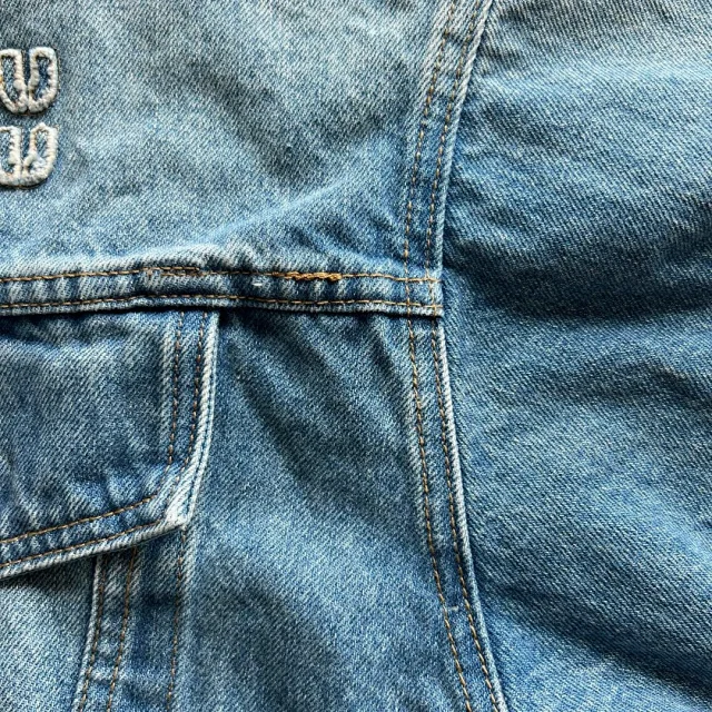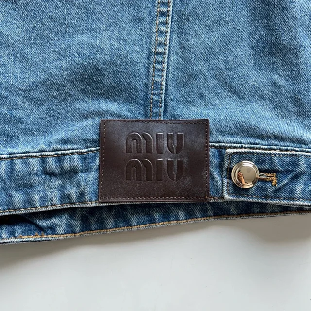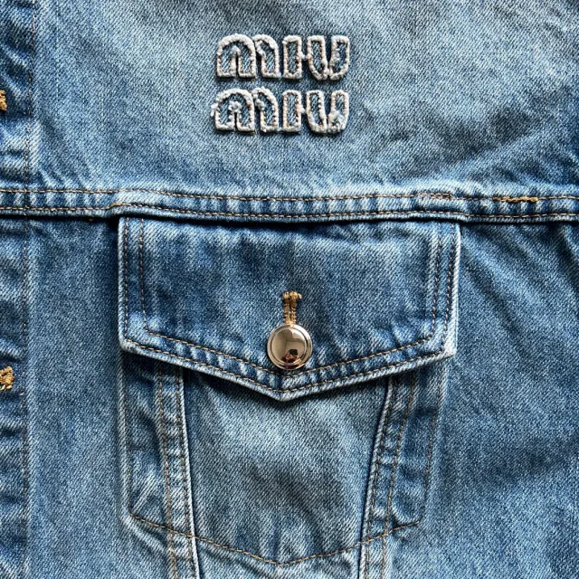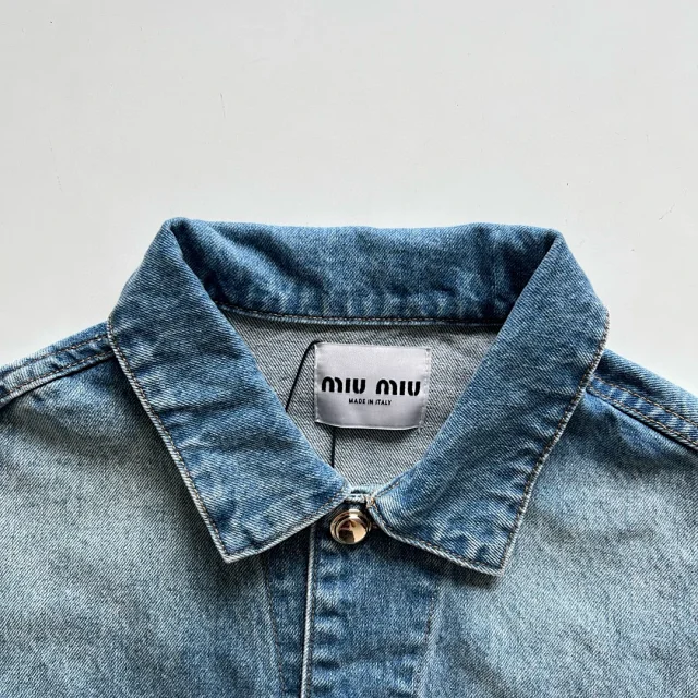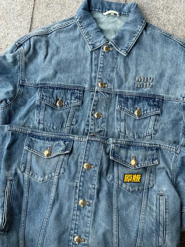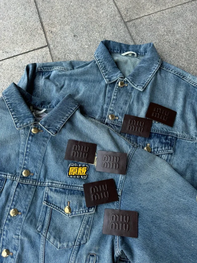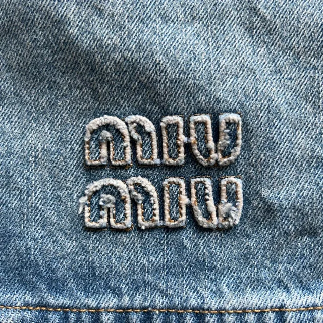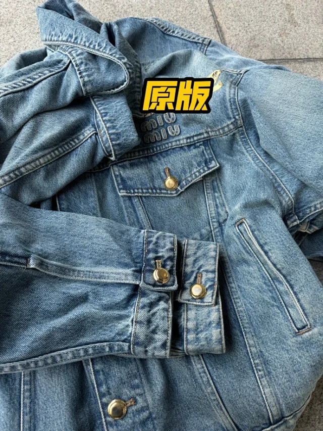 🔥miu24SS新款夹克贴布刺绣字母夹克外套做旧水洗蓝配色男女同款