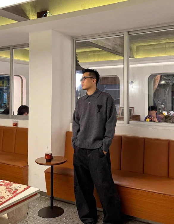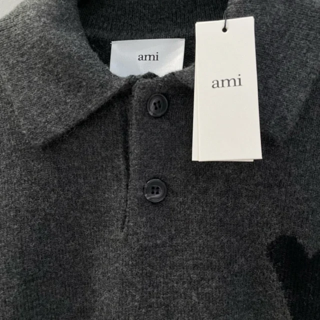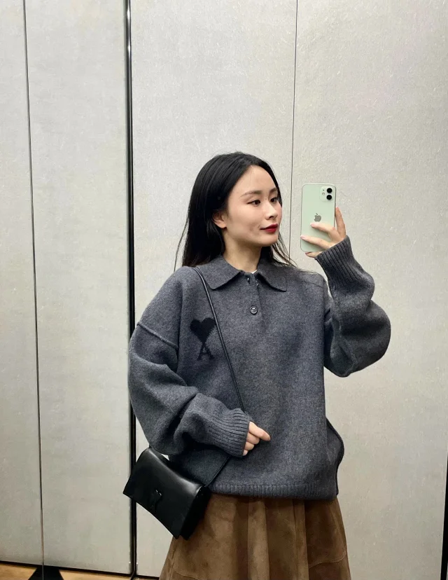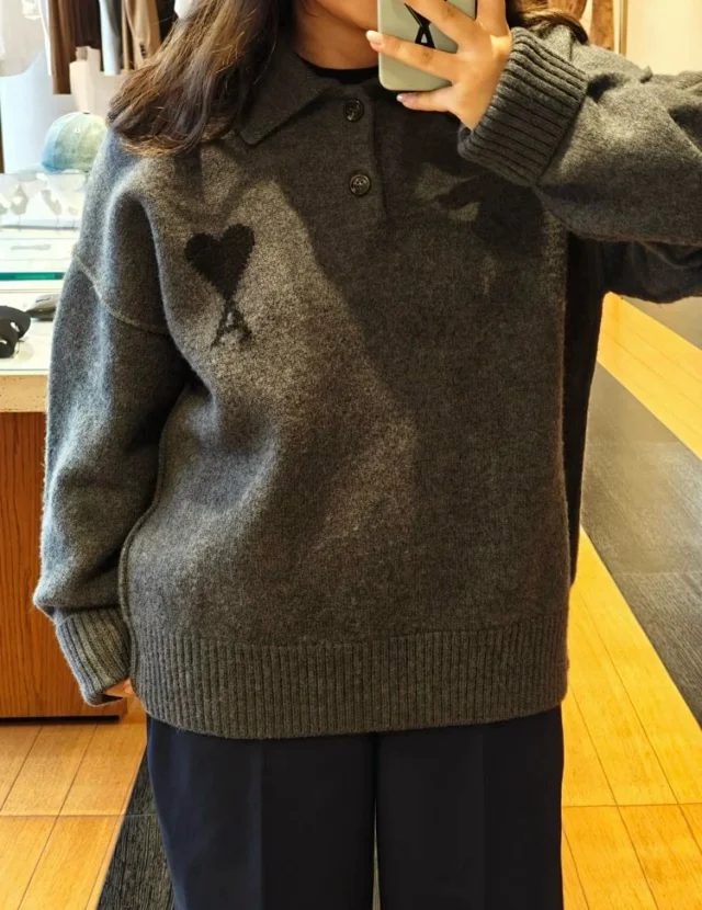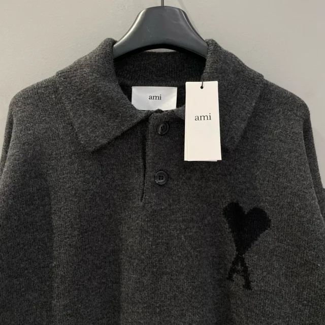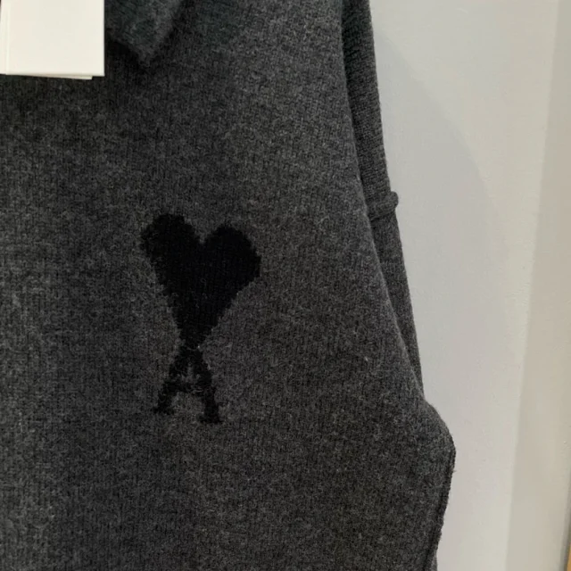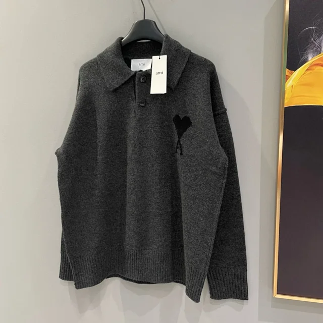 25新款AM黑色大爱心羊毛POLO领毛衣男女同款