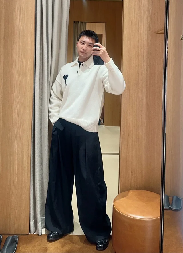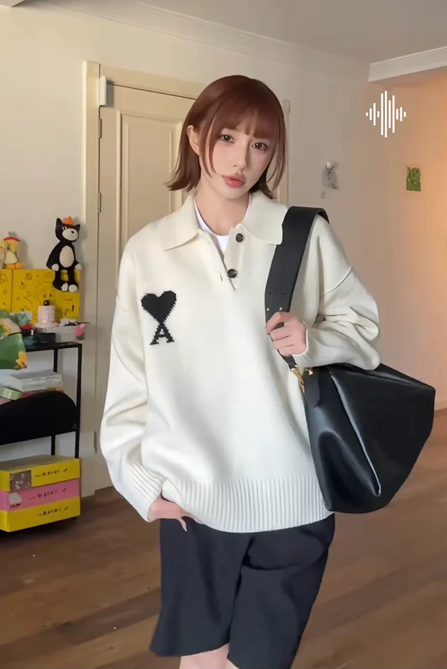 25新款AM黑白大爱心羊毛POLO领毛衣