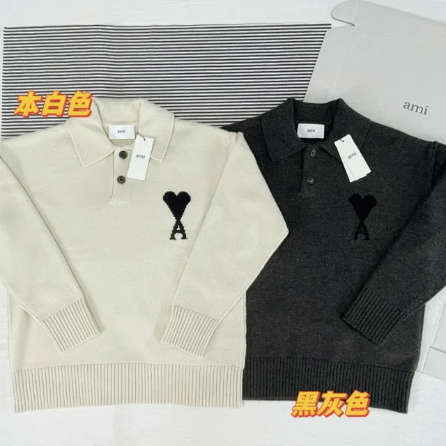 25新款AM黑白大爱心羊毛POLO领毛衣男女同款