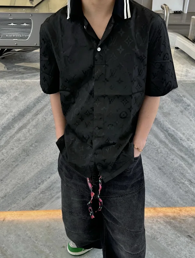 LV 25SS MONOGRAM波纹提花暗纹LOGO桑蚕丝短袖衬衫衬衣