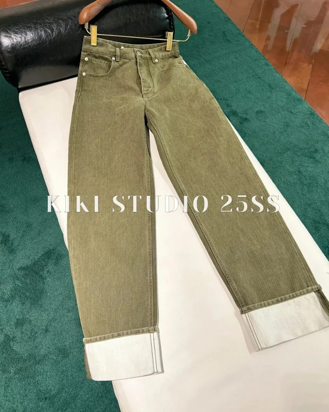 BV 25SS 早春折叠裤腿结构设计兔子纸牌橄榄绿牛仔裤