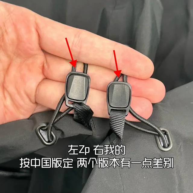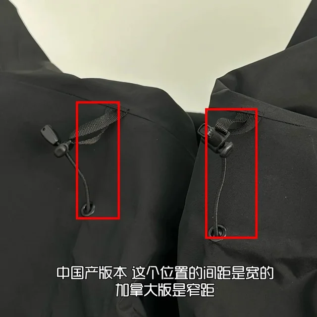 做工、细节标准都有轻微出入后帽檐的孔位和织带固定处之间的间距尤是偏宽的加拿大版的孔位间距就是窄的其次是内里洗标的Recco芯片之前在朋友圈也给大家看了