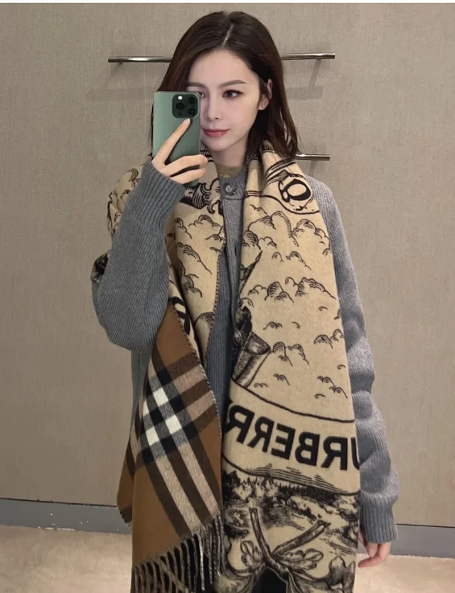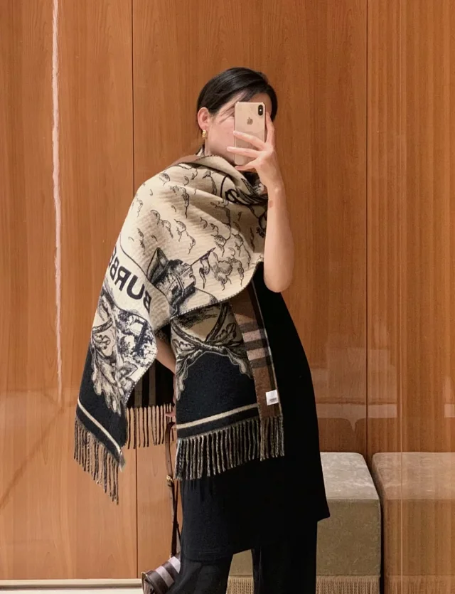 𝐁𝐔𝐑𝐁𝐄𝐑𝐑𝐘【大爆款原单品质数量有限】战马双面围巾告诉你什么是断货王!战马的图案简直太爱了~一种霸气的高级感‼️另一面是经典格纹实用百搭_匠心巨作双面两用大尺寸:210*50cm可围可披