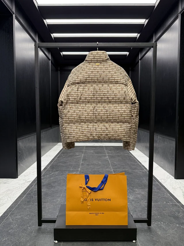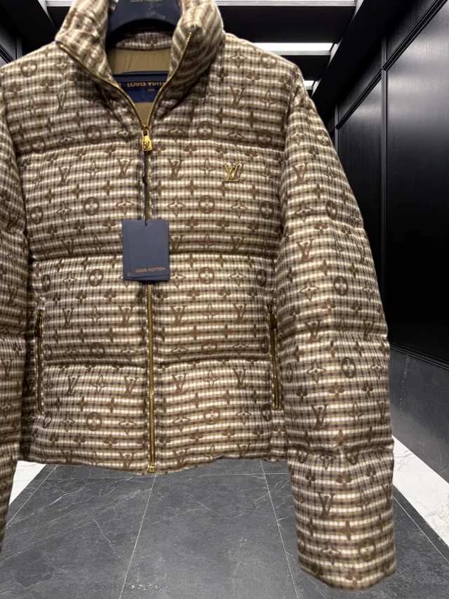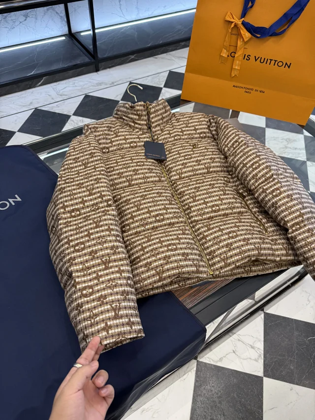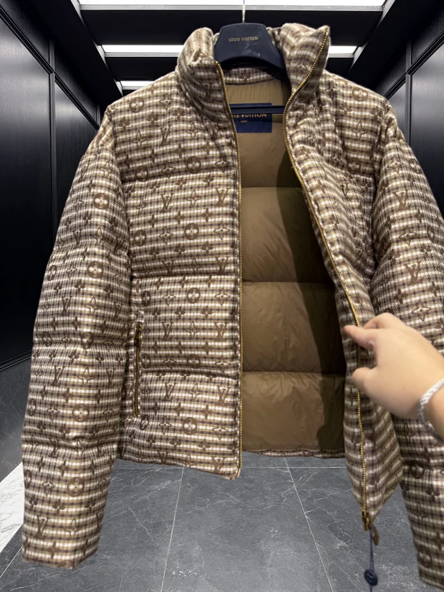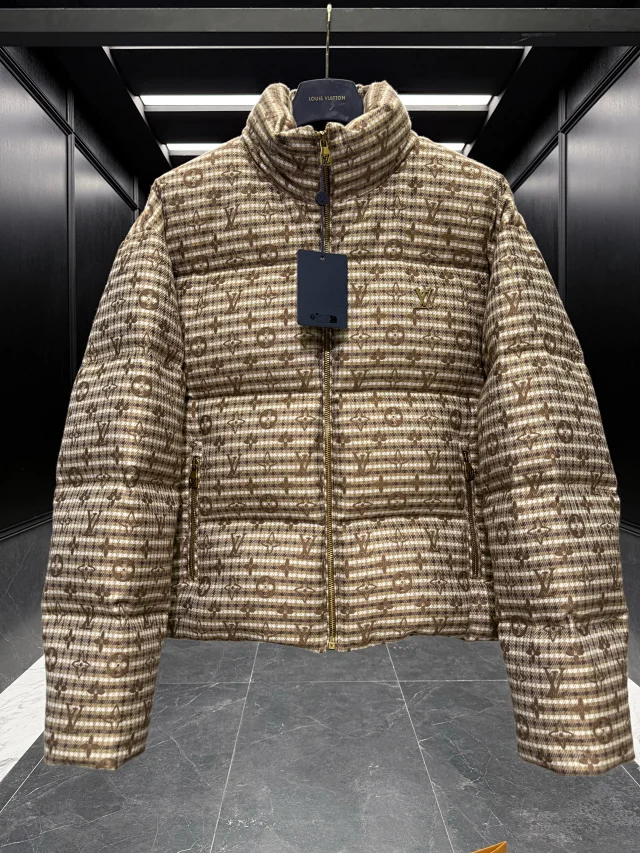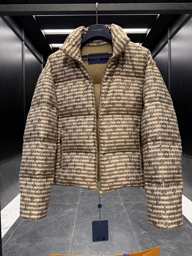 LouisVuittonLv全新千鸟格,复古格MONOGRAM满印提花立领羽绒外套.更多细节实拍.