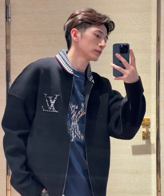 lV 25ss欧美风春秋新款字母贴饰刺绣针织飞行员夹克